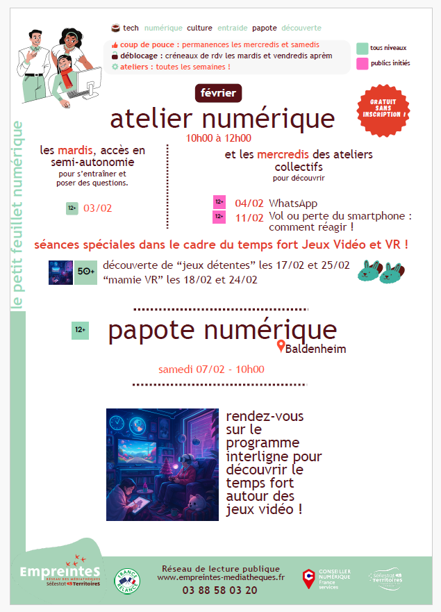 Le conseiller numérique accompagne tous ceux et celles qui souhaitent acquérir des compétences numériques indispensables dans la vie quotidienne : Naviguer sur Internet, gérer une boite mail, prendre RDV avec un médecin, démarches en ligne… Pour toutes info et RDV, contacter le 03 88 58 03 20 ou la mairie au 03 88 85 31 44 ☎️