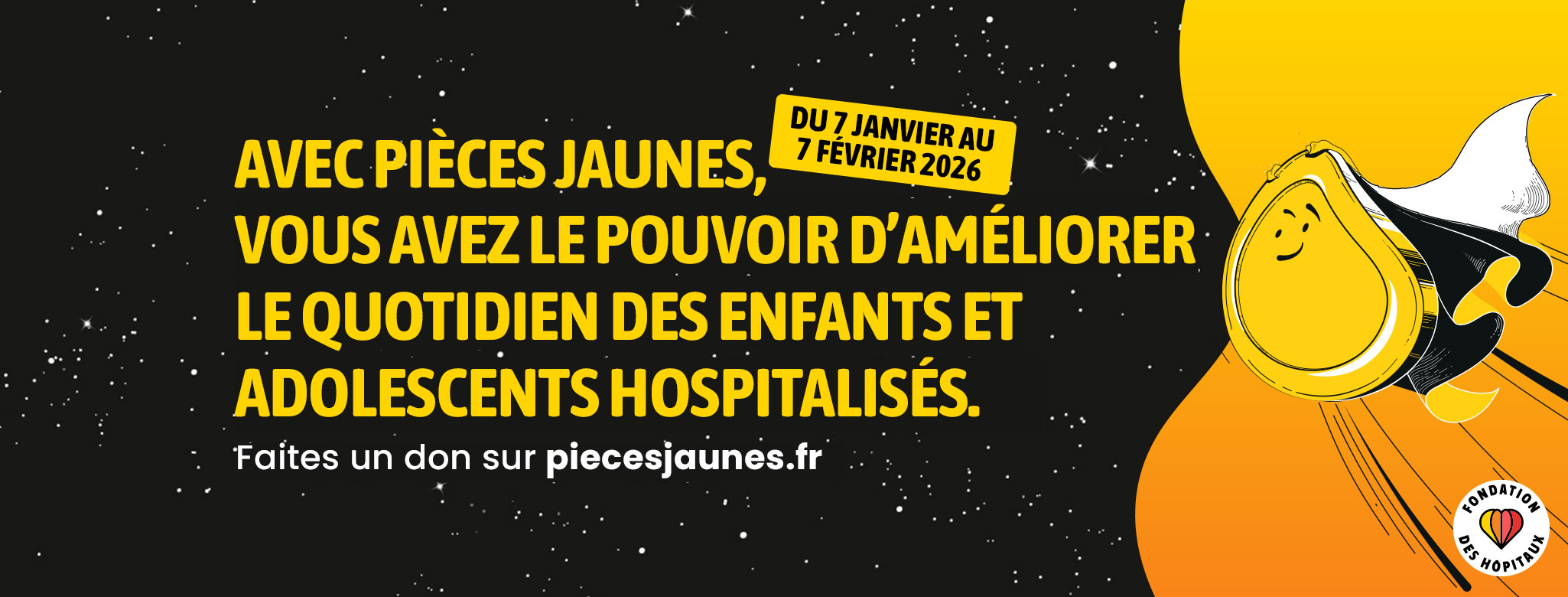 Du 7 janvier au 7 février 2026, le ministère s’associe à la Fondation des Hôpitaux pour la 37e Opération Pièces jaunes, destinée à améliorer la vie des enfants et des adolescents hospitalisés.